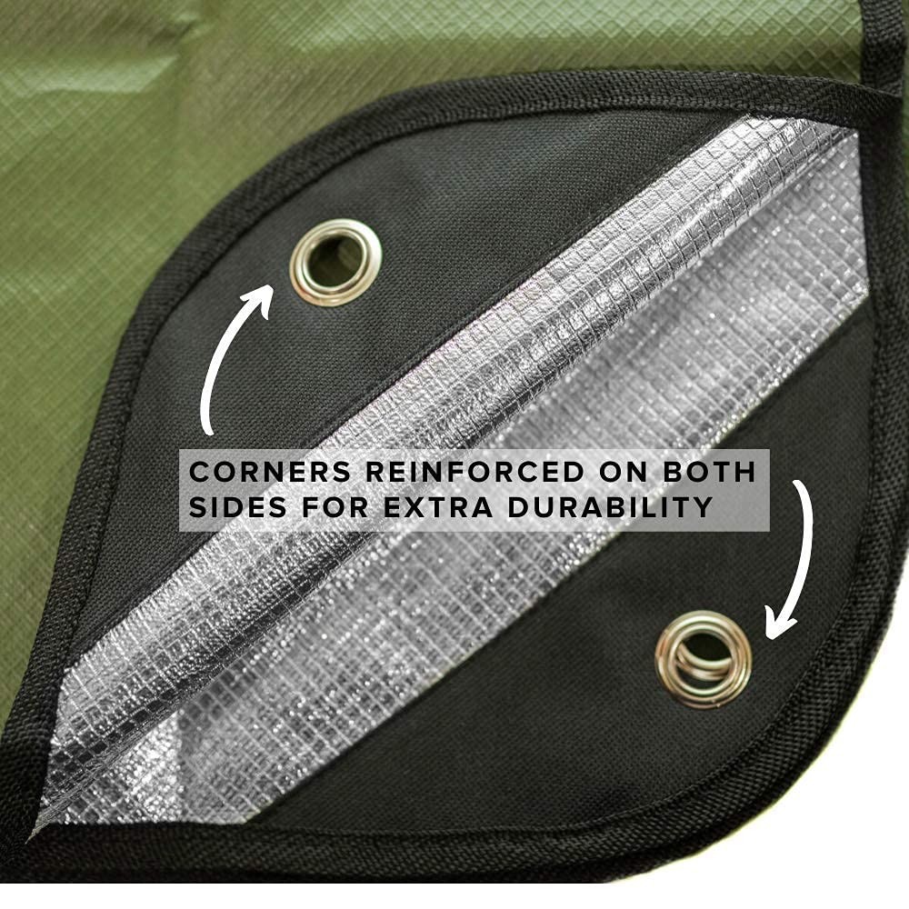 - Built Tough with Reinforced Grommets: Four reinforced grommets allow you to secure the blanket as a tarp, ground cover, wind block, or emergency shelter. Durable materials and reinforced construction make it reliable survival gear for camping, overlanding, and outdoor adventures.